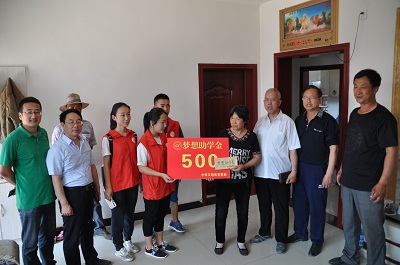 在柏坡底村,大家分别来到车城乡小学学生刘志勇、曹惠念和韩俊芳的家中探望,并给每位学生发放了500元的梦想助学金,分别交到了其家长王秀英、陈曹有和韩明春的手上。随后到达桃村看望程刚文和曹建文,并把车城乡小学学生程宁和吉县三中学生曹晓静的助学金交到了家长手上。