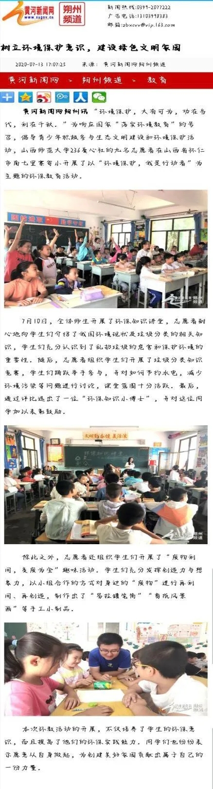 236爱心社青时暑期实践队坪安支教队山西省朔州市怀仁市陶瓷文化调研社会实践活动和“环境保护,我是行动者”主题环保教育支教活动。