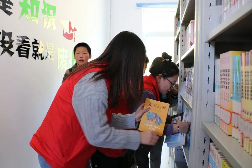 仪式结束后,236爱心社志愿者们将捐赠图书送于“梦想书屋”,带领学校孩子们一起整理图书,将图书分类上架。(文/刘丽 摄/张睿睿)