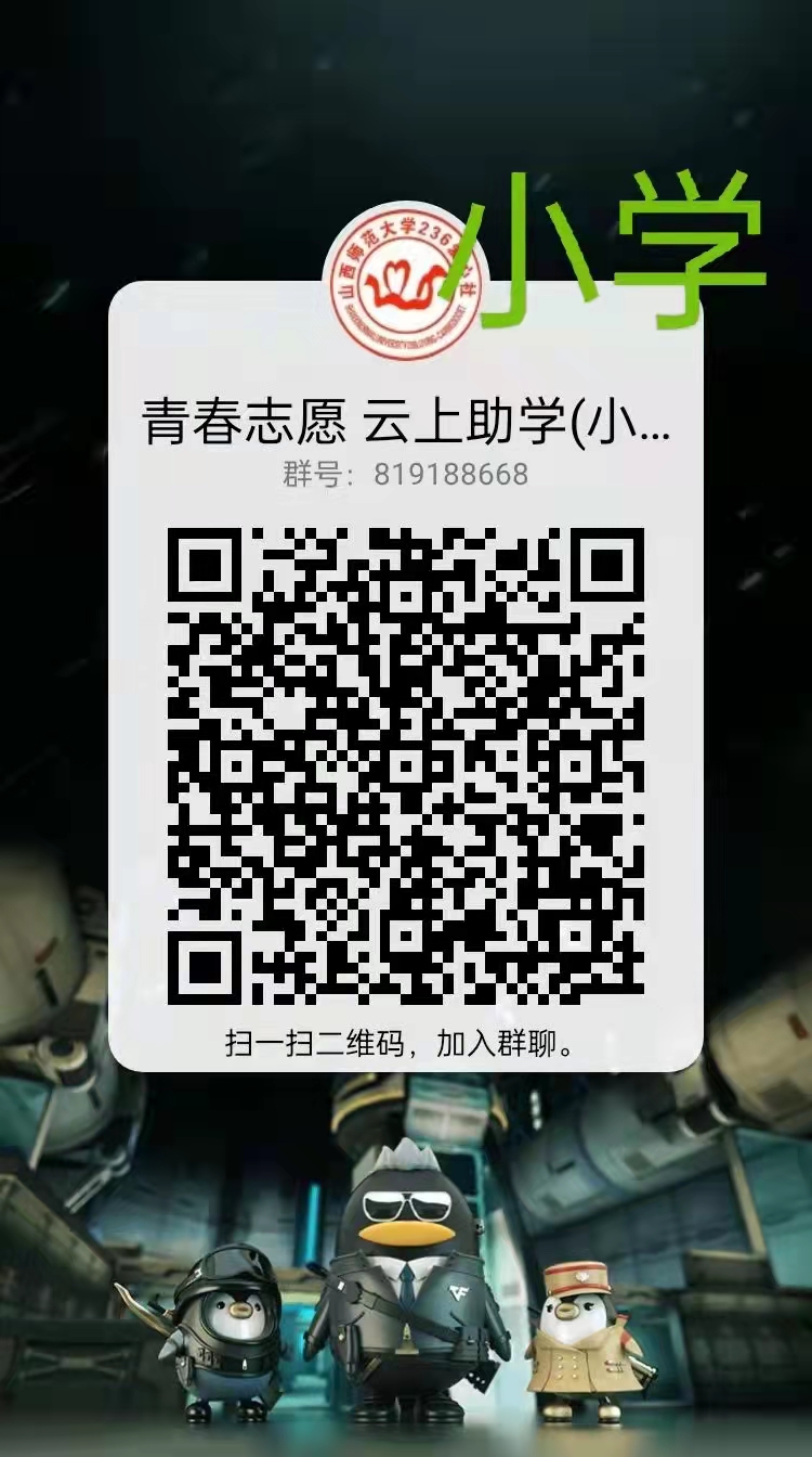 想报名或了解更多助学情况,扫描二维码加入QQ群聊,有什么问题我们都会耐心解答的噢~(文/2001班 王嘉鑫 图/236爱心社)