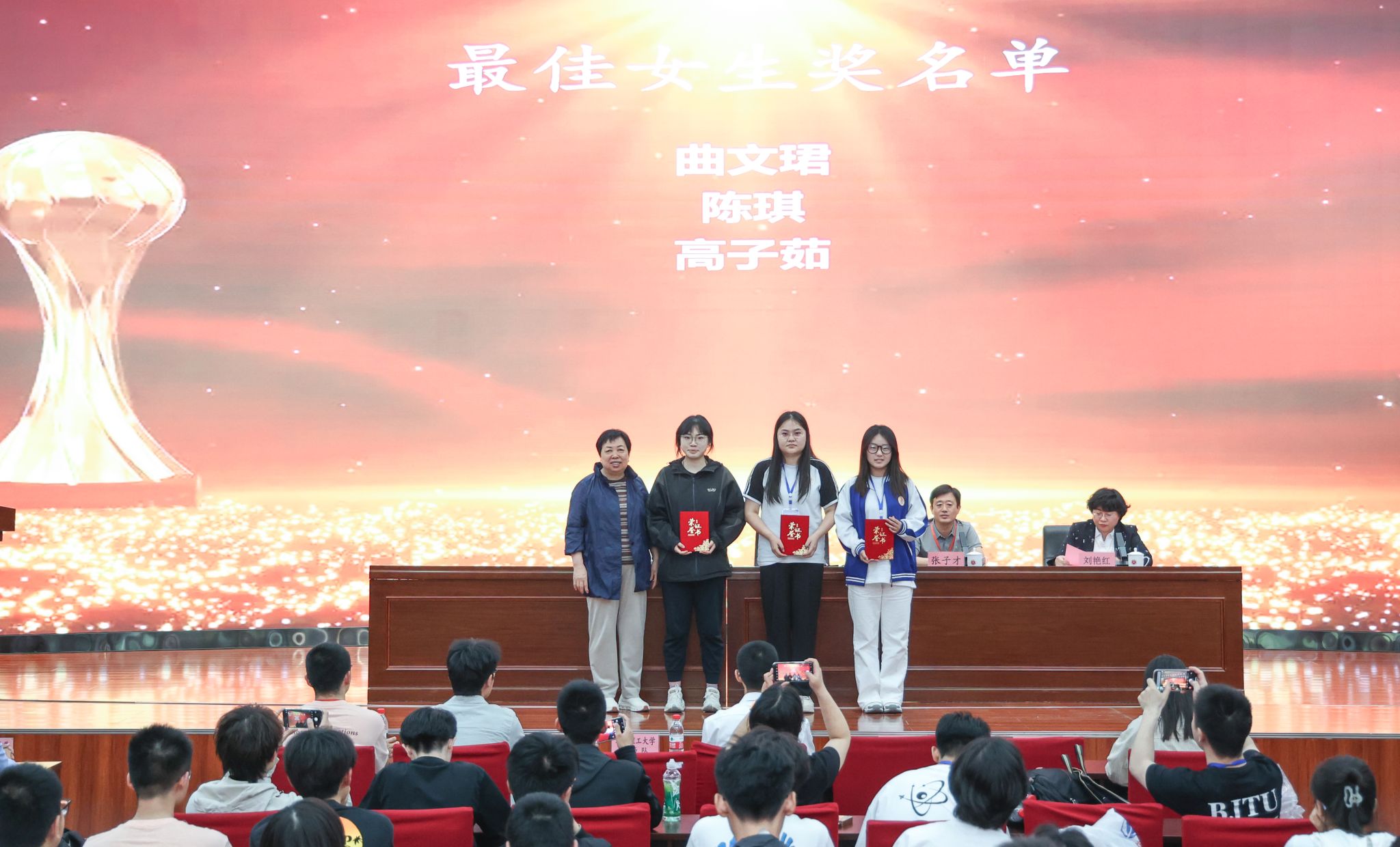 陈琪、张心怡、张佳颖、介浩宇、高子茹等5名同学和程留永、潘俊星、吴瑞祥、王会杰等4位指导老师组成的代表队,经过3轮12阶段的激烈角逐,荣获华北赛区二等奖。陈琪、高子茹两位同学荣获最佳女生奖。