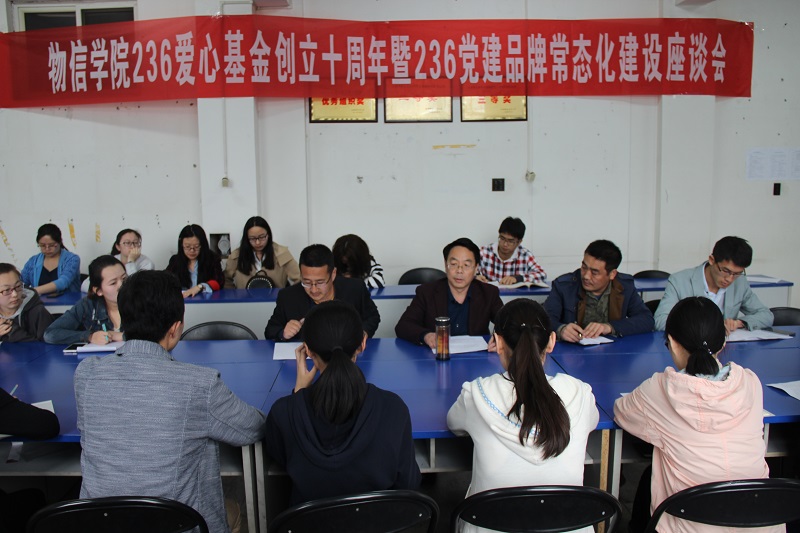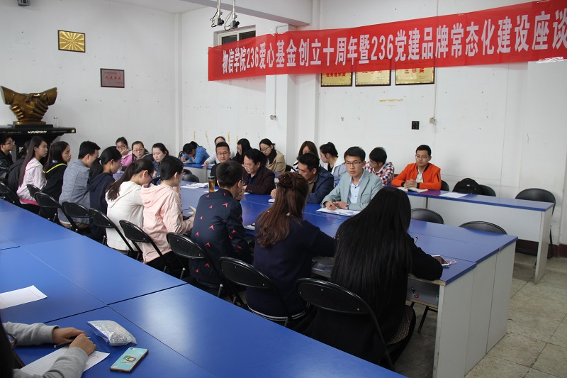 4月19日16:30,云顶Casino 在四号楼二层多功能教室举行纪念236爱心基金创立10周年暨236党建品牌常态化建设座谈会,云顶Casino 党委书记吴文国出席并作重要讲话。236学生党支部党员、236爱心社骨干、团委学生会主要干部、部分班级班长团支书参加会议。