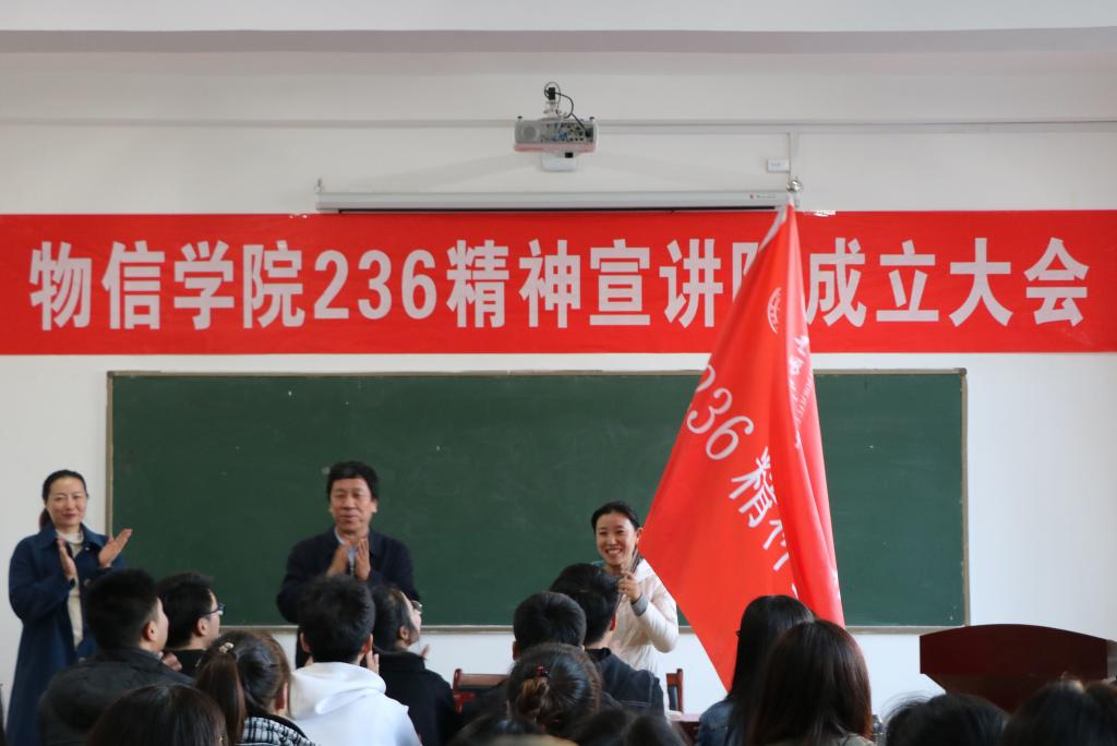 会上,校党委副书记高峰为236精神宣讲队授旗。
