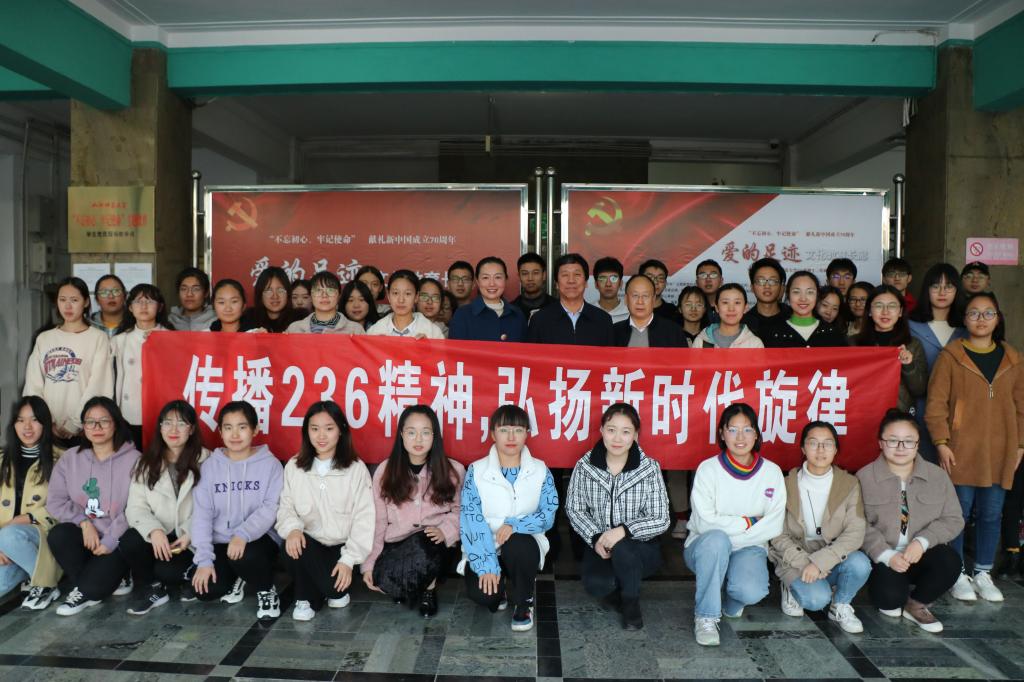 党委致辞。她强调,236十余年坚持以信仰之光照亮青春之路、以爱心奉献温暖成长之路、以矢志奋斗铺就成才之路就是236人不忘初心的真实写照,将这份初心坚守、坚持并传承,教育鼓舞更多的青年学子成长成才,就是236人的使命。希望大家以236精神宣讲队的成立为契机,树立社会主义核心价值观,讲好236故事,传播236精神。